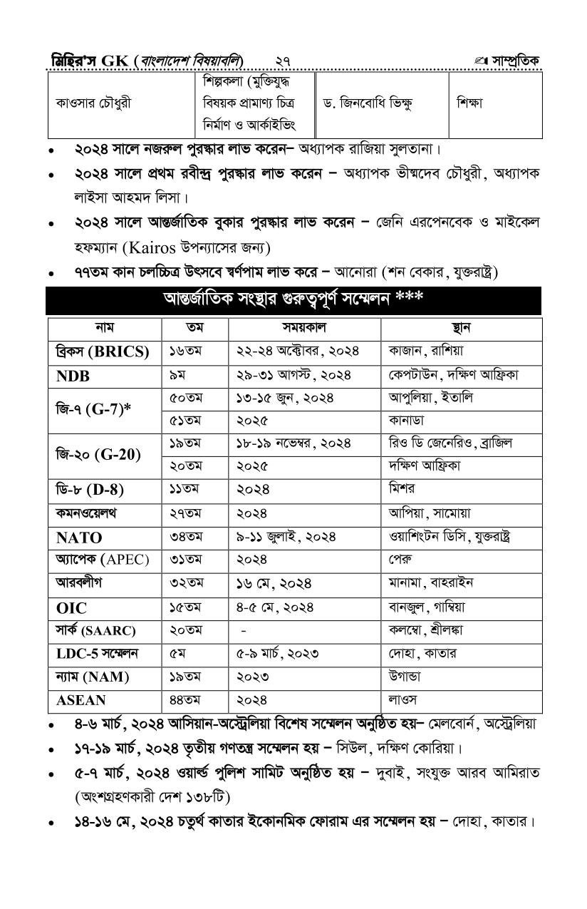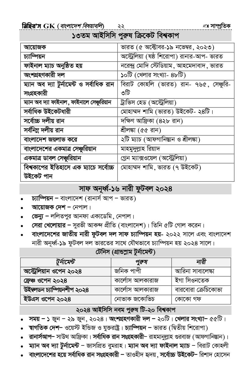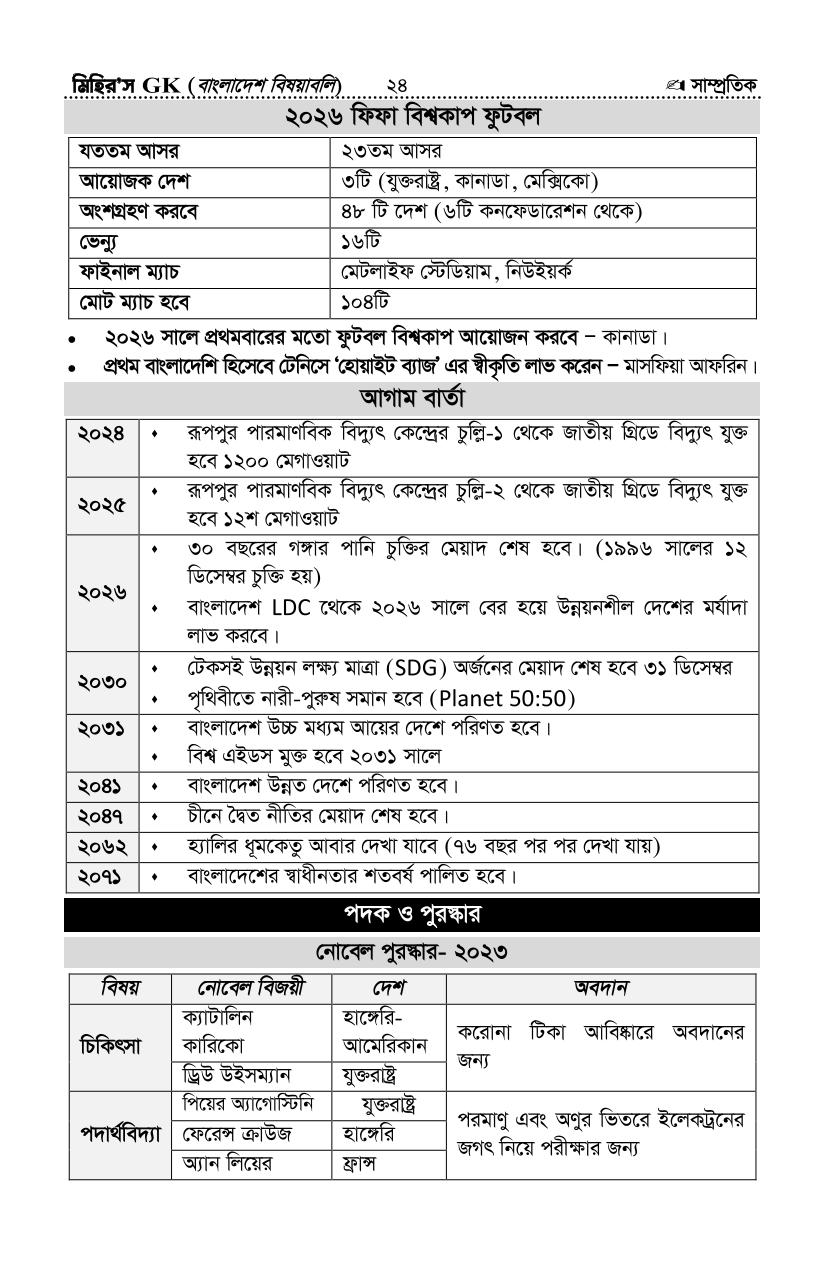 সর্বশেষ সাম্প্রতিক সাধারণ জ্ঞান ২- আপডেটঃ সেপ্টেম্বর-২৪ (সৌঃ মিহির জিকে)