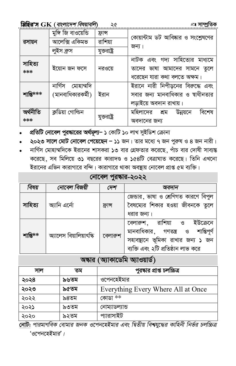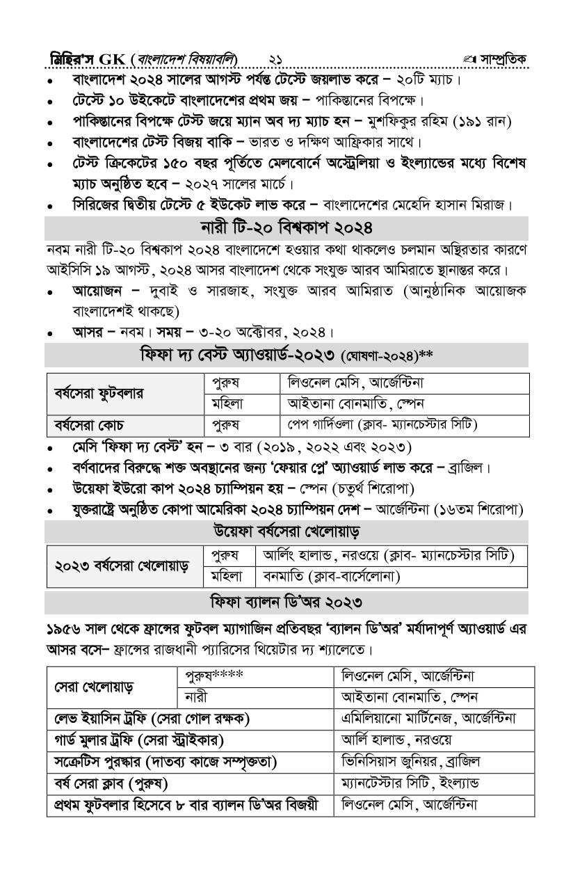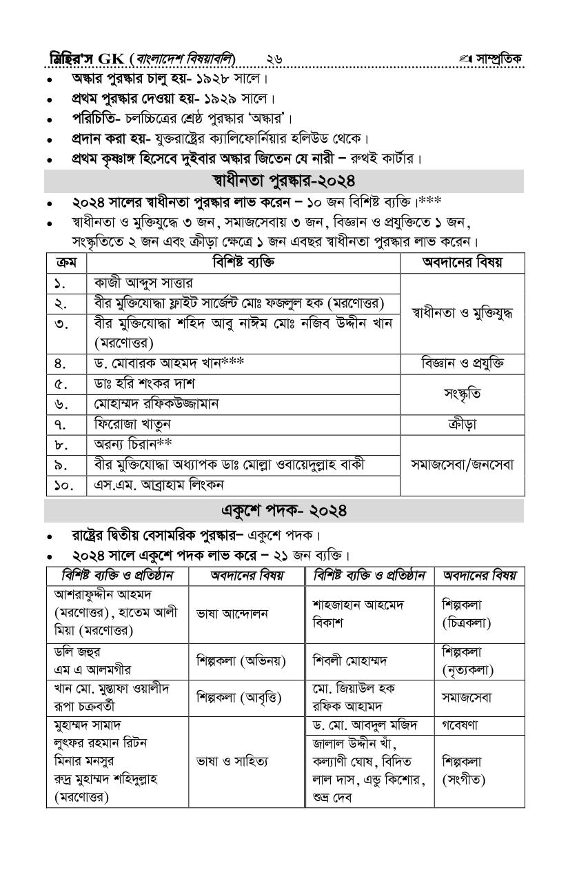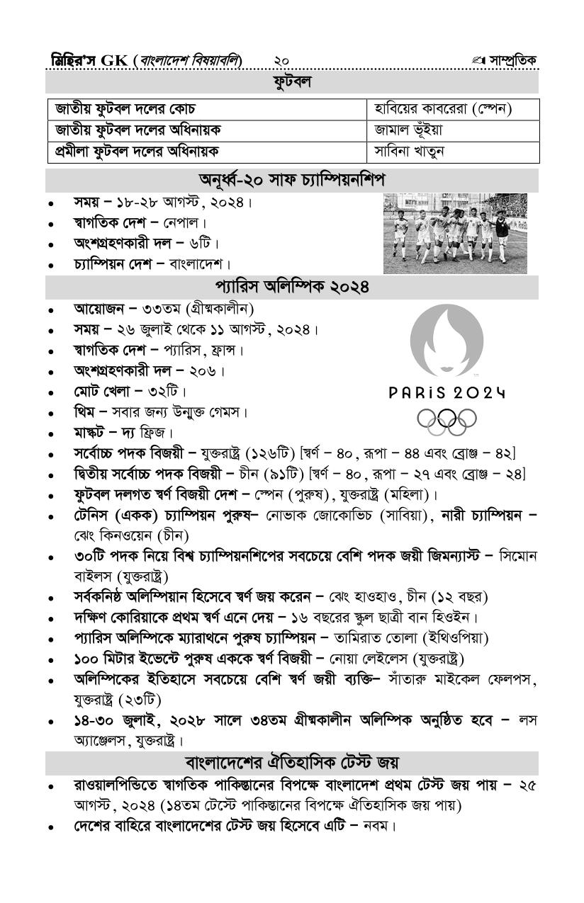 সর্বশেষ সাম্প্রতিক সাধারণ জ্ঞান ২- আপডেটঃ সেপ্টেম্বর-২৪ (সৌঃ মিহির জিকে)