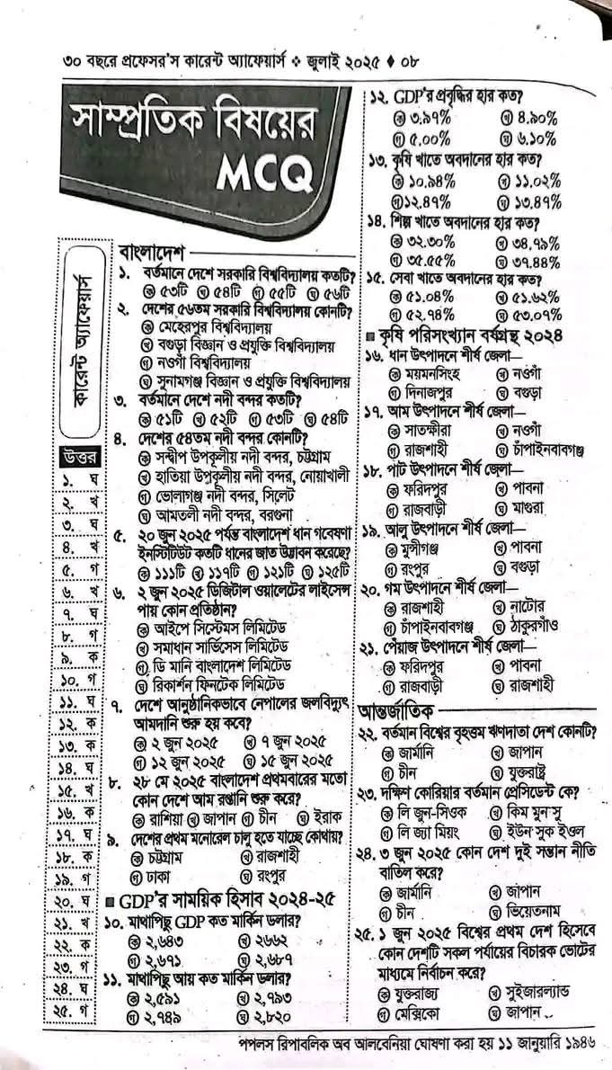 সাম্প্রতিক বিষয়ের এমসিকিইঃ জুলাই ২০২৫