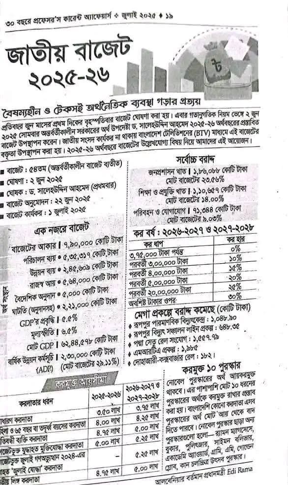 জাতীয় বাজেট ২০২৫/২৬ (খুবই গুরুত্বপূর্ণ)