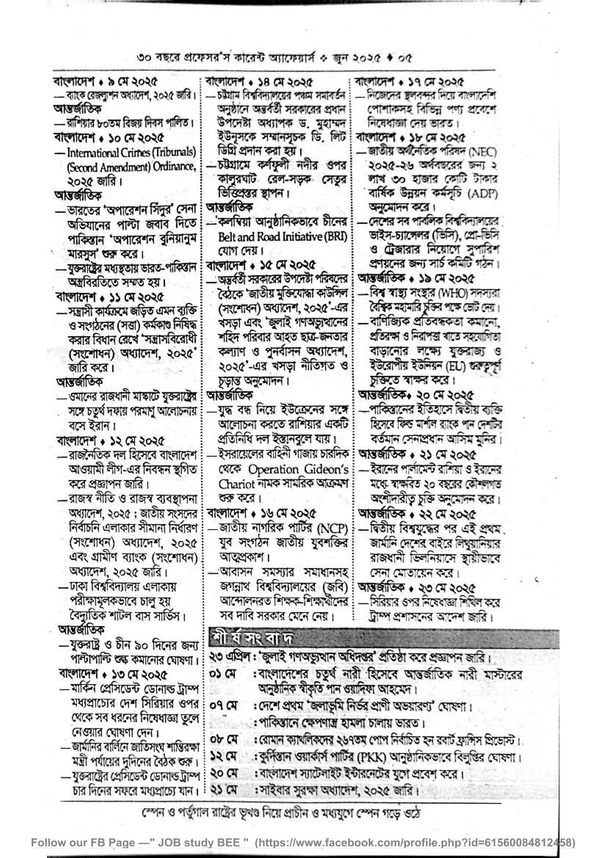 সাম্প্রতিক তথ্য প্রবাহঃ জুন ২০২৫