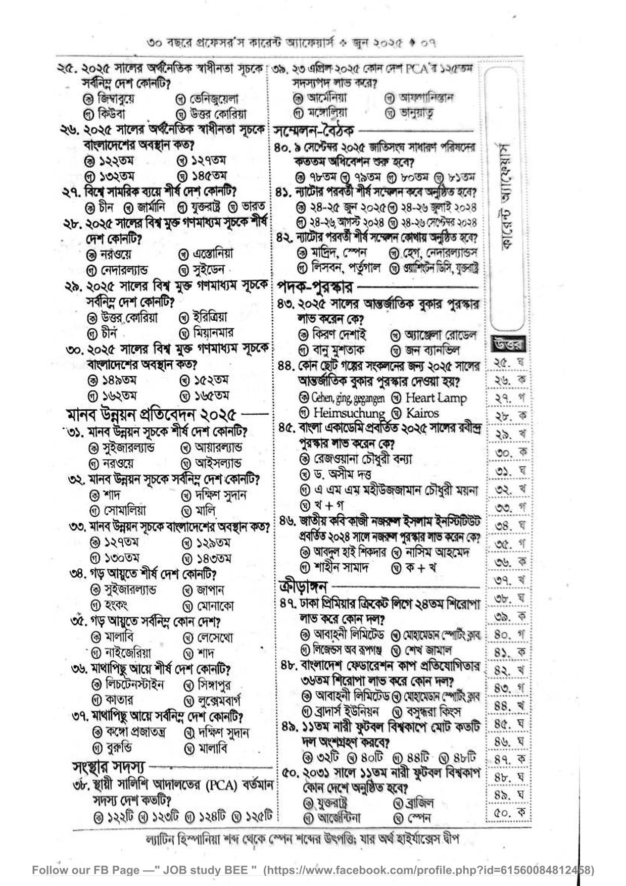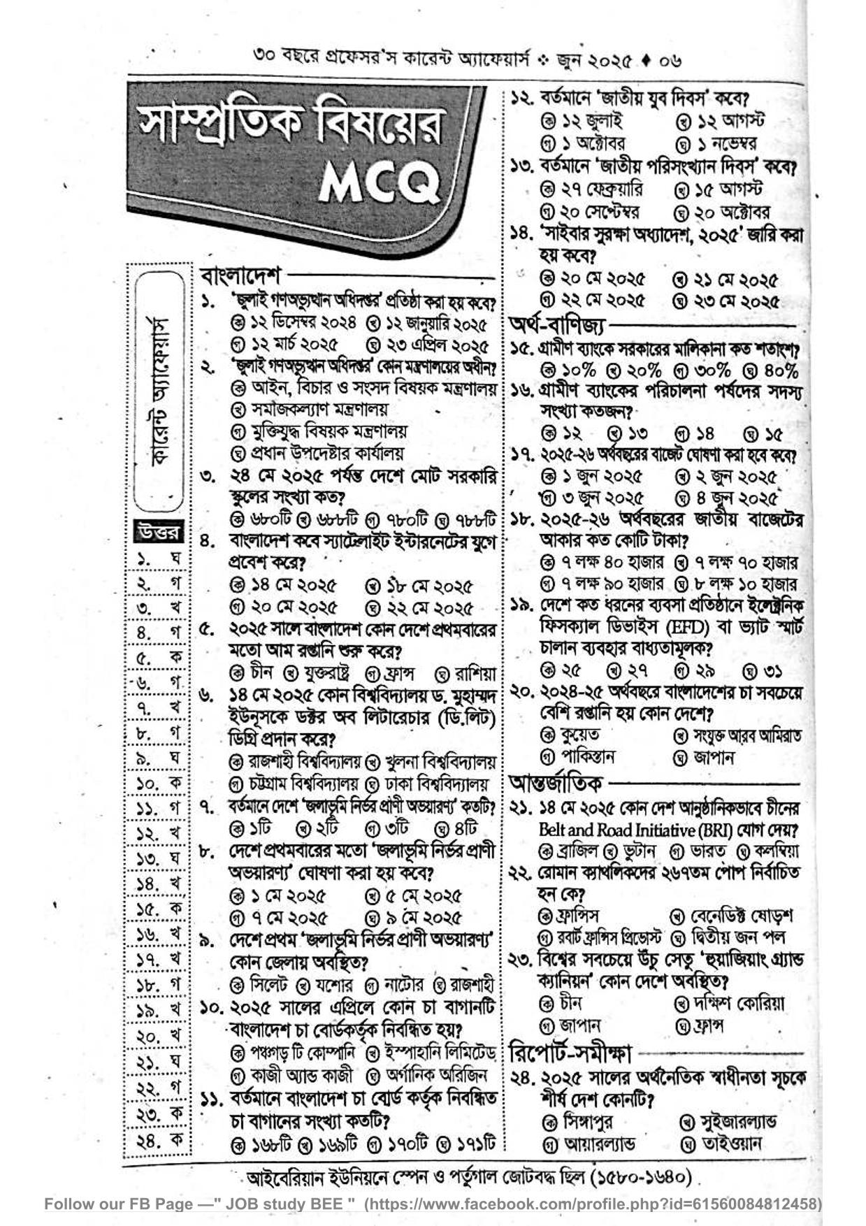 সাম্প্রতিক বিষয়ের এমসিকিউঃ জুন ২০২৫