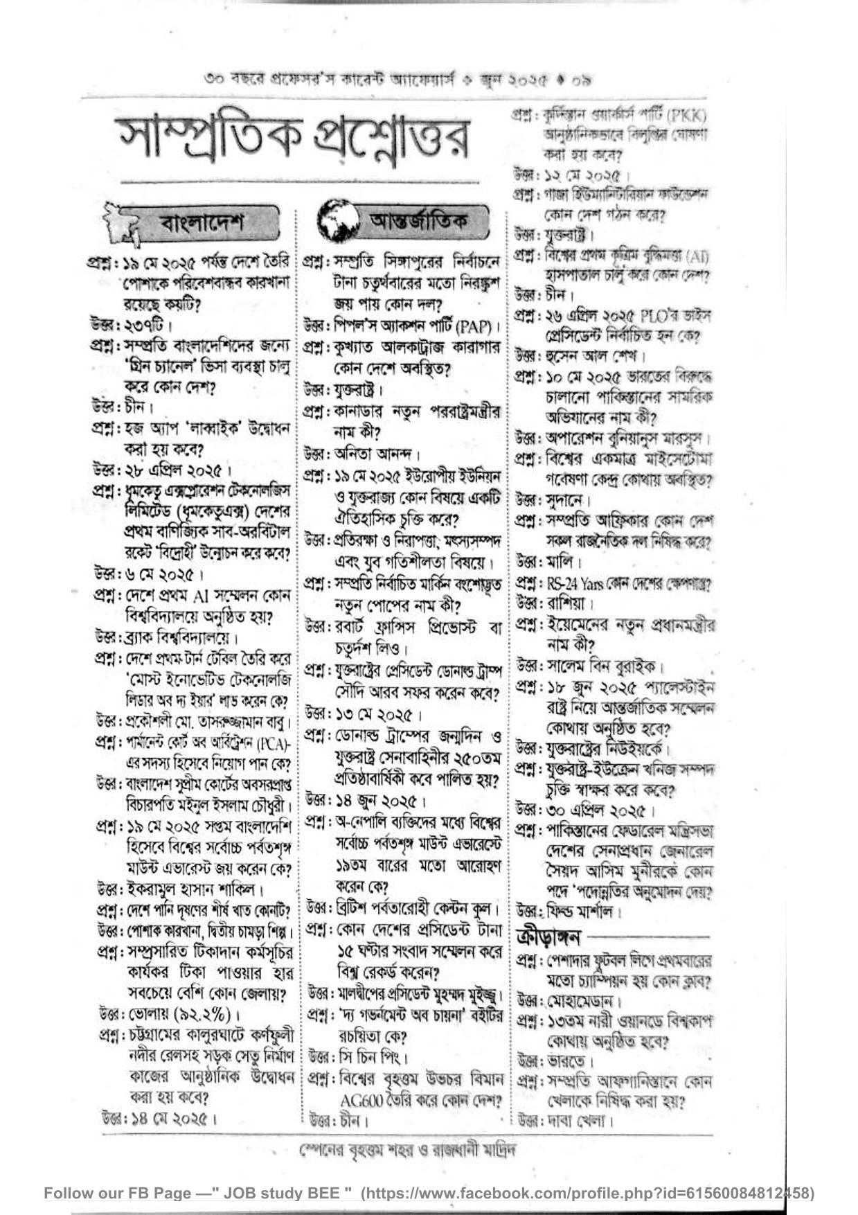 সাম্প্রতিক প্রশ্ন-উত্তরঃ জুন ২০২৫