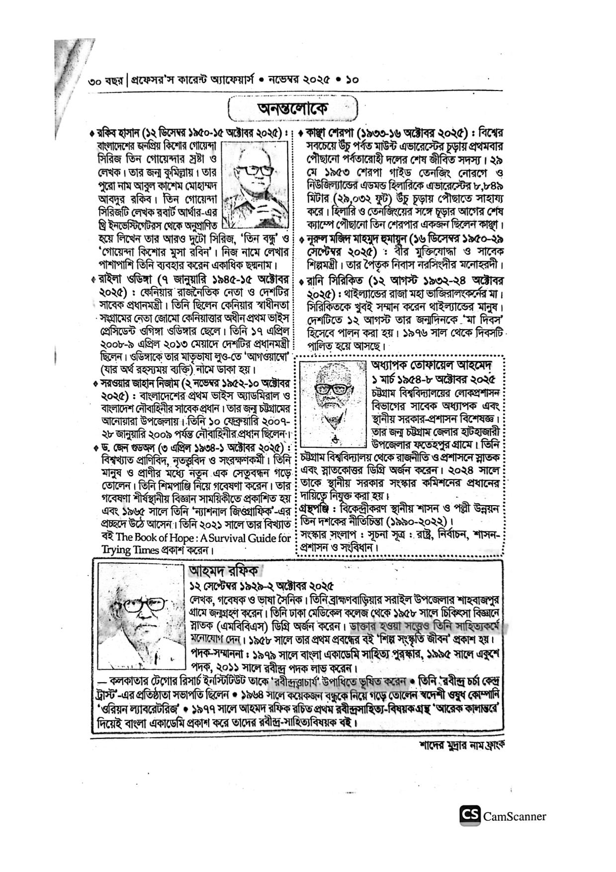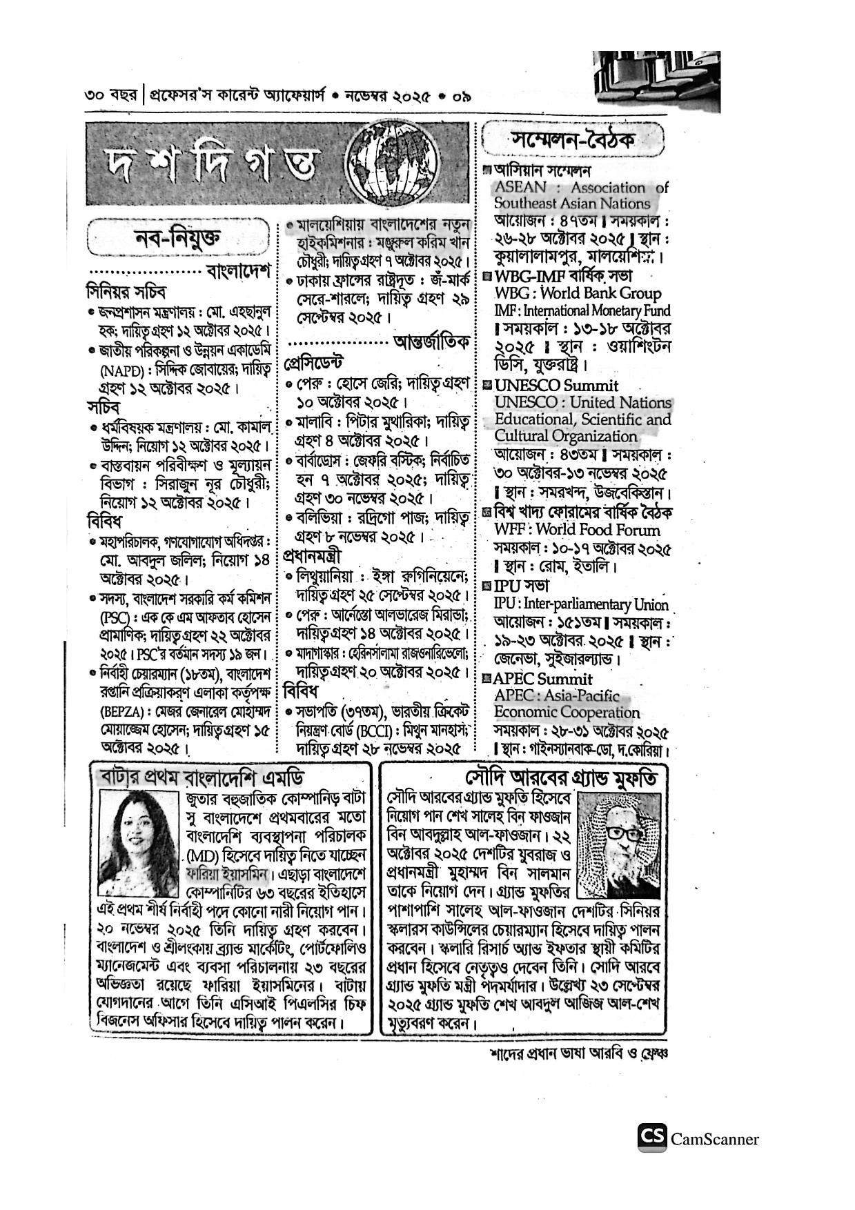 সাম্প্রতিক গুরুত্বপূর্ণ অন্যান্য বিষয়ঃ নভেম্বর-২০২৫