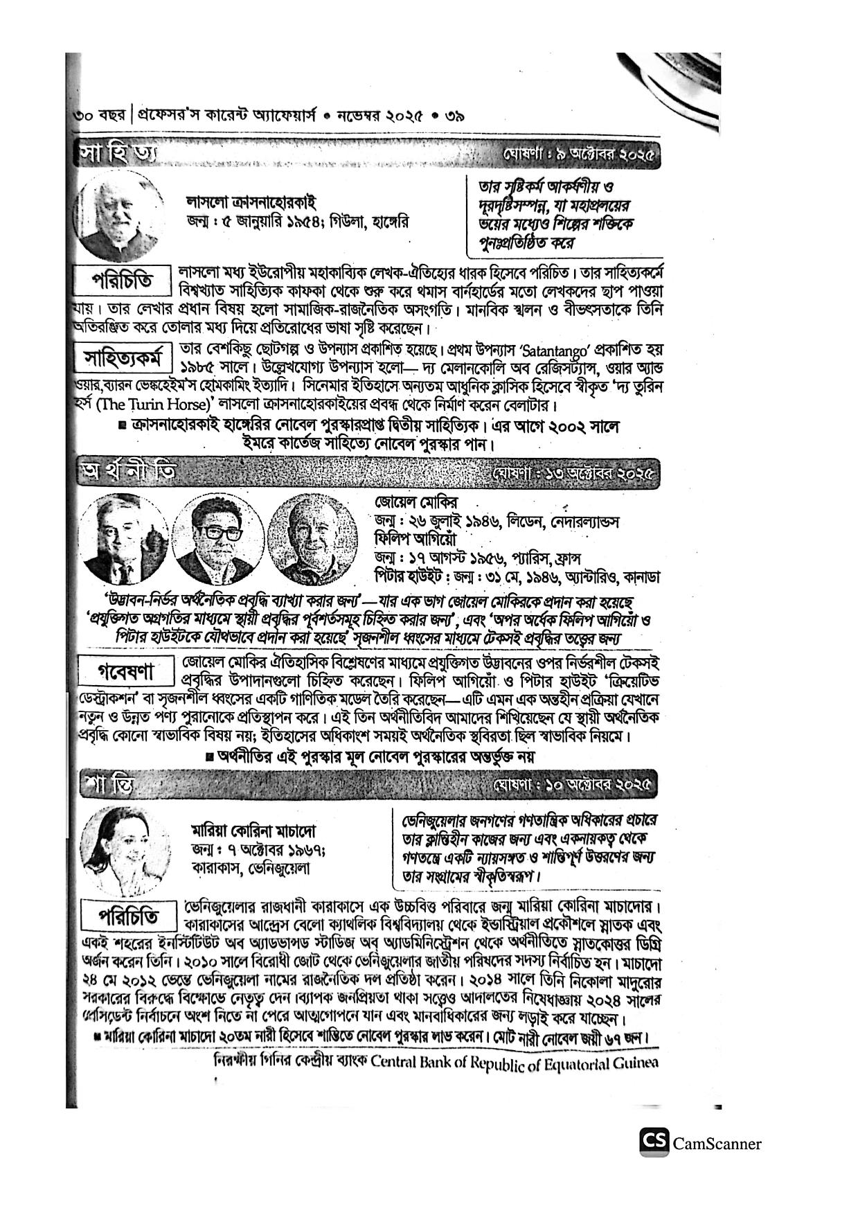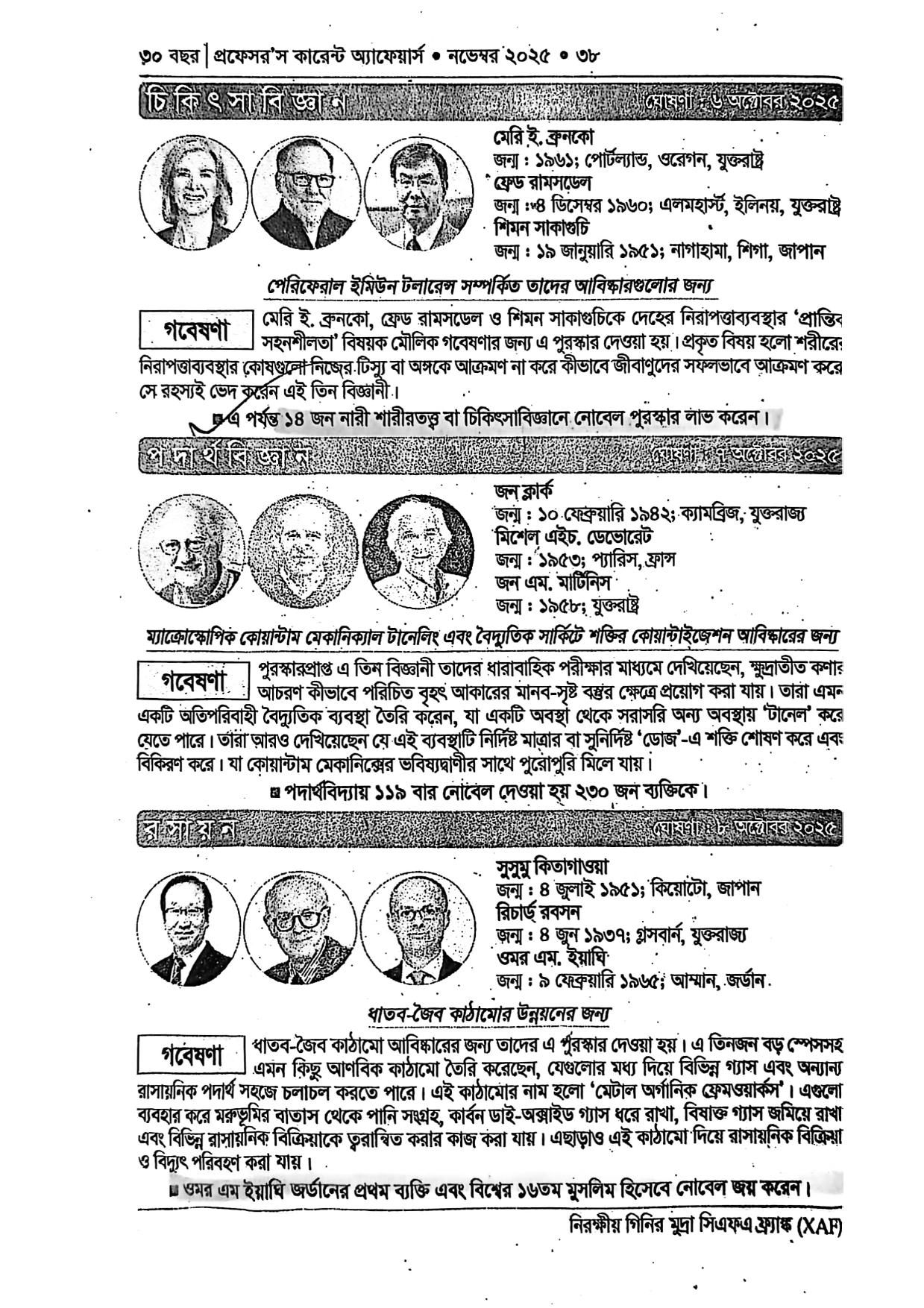 নোবেল পুরস্কার ২০২৫-বিস্তারিতঃ (খুবই গুরুত্বপূর্ণ )